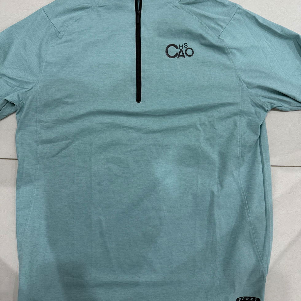 Mens Aqua 3 Quarter Zip Long Sleeve Printed Tee